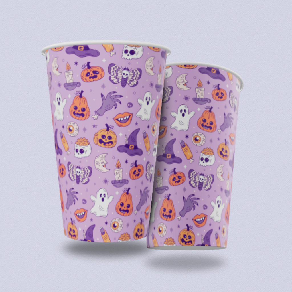 Compre agora seu copo de papel 300ml personalizado com arte de Halloween e transforme sua festa em uma experiência divertida e inesquecível!